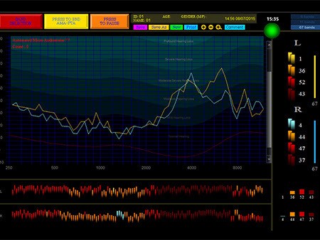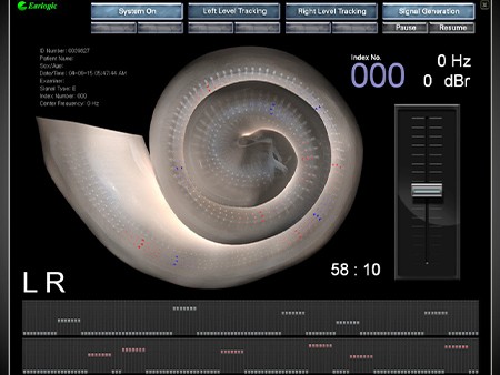 AMA-PTA기기를 사용하여 기존의 6밴드, 17밴드와 다르게 67~134밴드까지의 고해상도 주파수 사양으로 청력검사를 실시